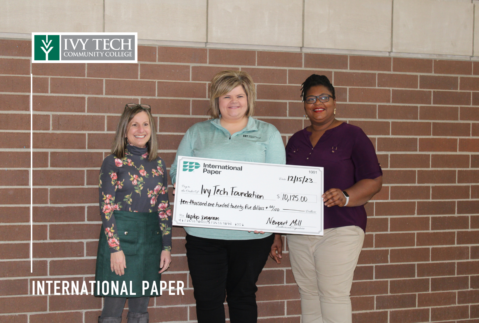 Source : www.facebook.comInternational Paper Awards Ivy Tech Terre Haute $10,125 to Support